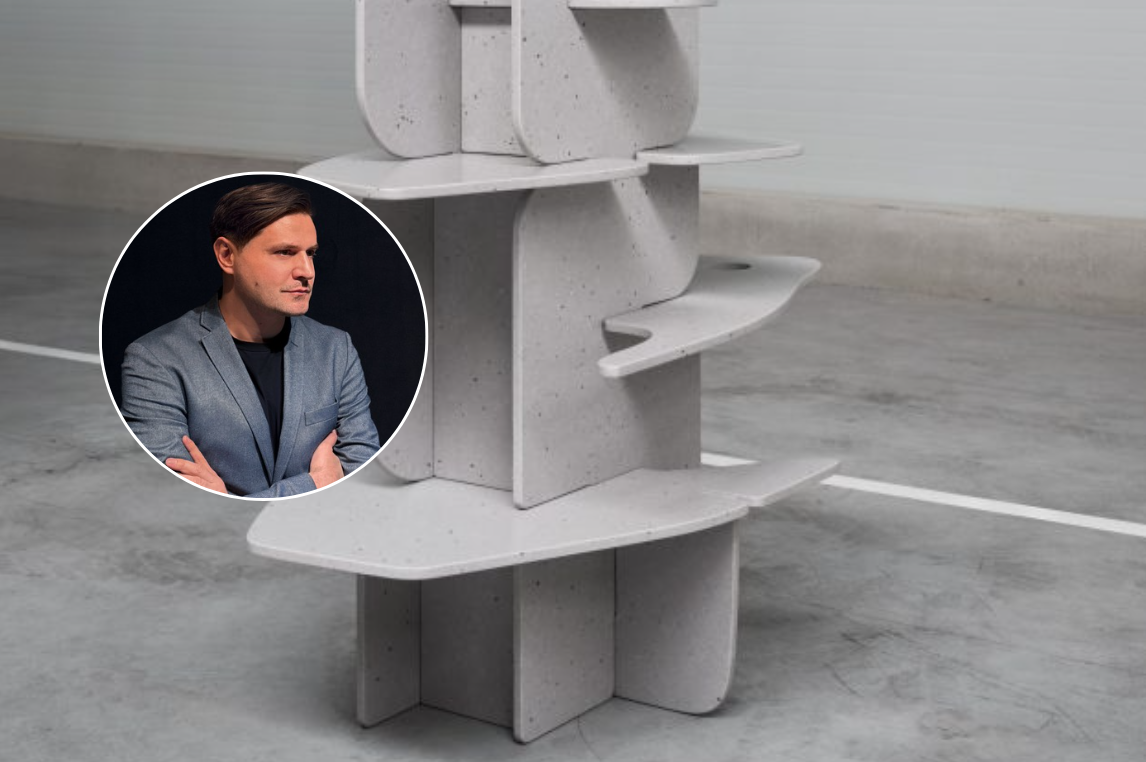Emir Ramović von Boya Concepts ist der Gewinner des Design Wettbewerbs C⋅Creations. Miraculum nennt er das skulpturale Regal aus Silestone FFrom01. Recycelte PET-Fragmente verleihen der hybriden Mineraloberfläche eine besondere Tiefe.